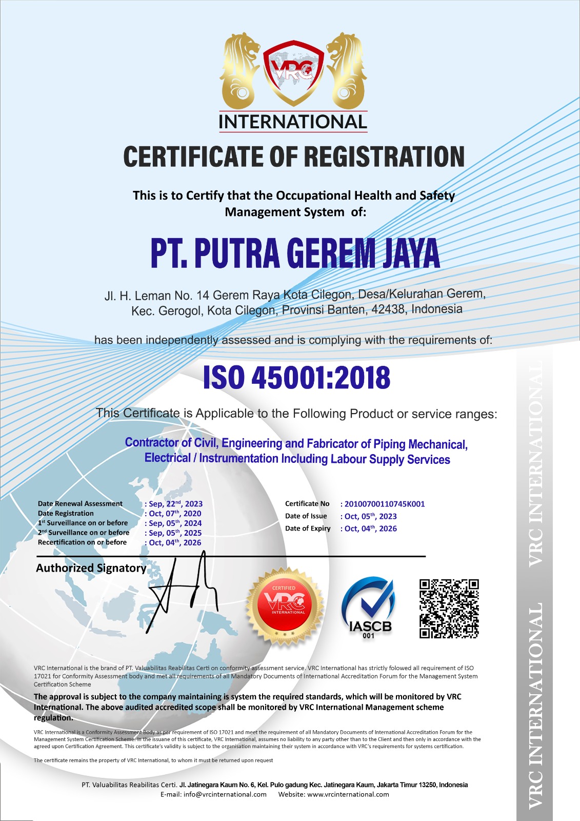 Putra Gerem Jaya has collaborated with several companies such Krakatau Steel, Mitsubishi Chemical, SIEMENS, INEOS Aromatics, Daekyung.